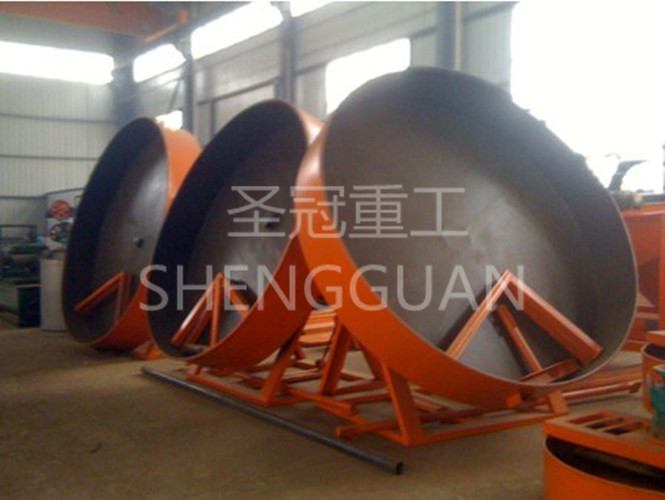 生料粉通過預加水攪拌均勻,輸入盤內,隨著盤的轉動,料在盤體內通過滾動逐步形成球狀,達到預定的直徑后排出盤外,再輸送到下一道工序。